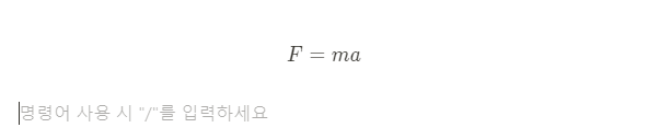 빈 블록에서 '/인라인수학공식'이라고 치면 된다. 그 외에도 '/수학', '/인라인수학', '/math'라고 쳐도 인라인 수학 공식을 사용할 수 있다.