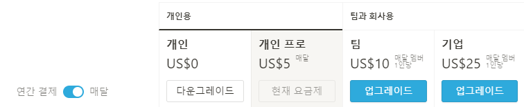 - 비용: 매달 US$4 (연간 요금제) / 매달 US$5 (월간 요금제)